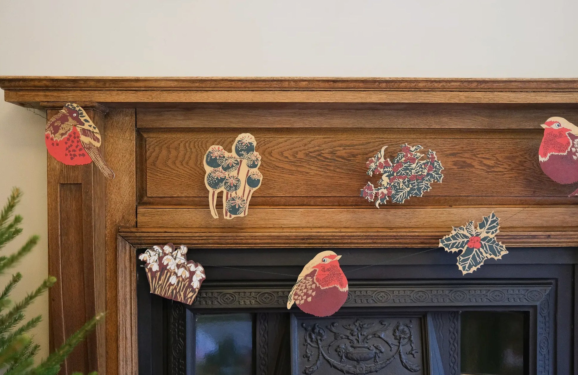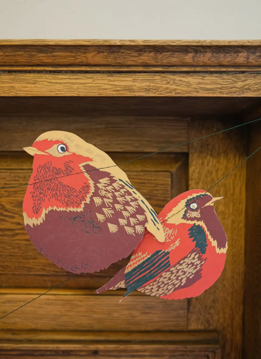Enhance your holiday decor with the Christmas Garland - Hedgerow. This 3m garland features a paper hedgerow design complete with festive robins and holly. Perfect for adding a touch of nature to your windows, walls, or mantelpieces.