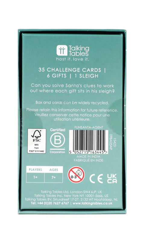 Join Agent Santa on a top-secret festive mission with this fast-paced family game from our bestselling Fun Guy Santa collection. Bursting with playful challenges and Christmas twists, it’s the perfect way to spark laughter and friendly competition during the holidays. Made from sustainable materials, this compact, reusable game is ideal for stocking fillers or spontaneous fun between Christmas and New Year. Festive, funny and full of surprises – mission accepted.