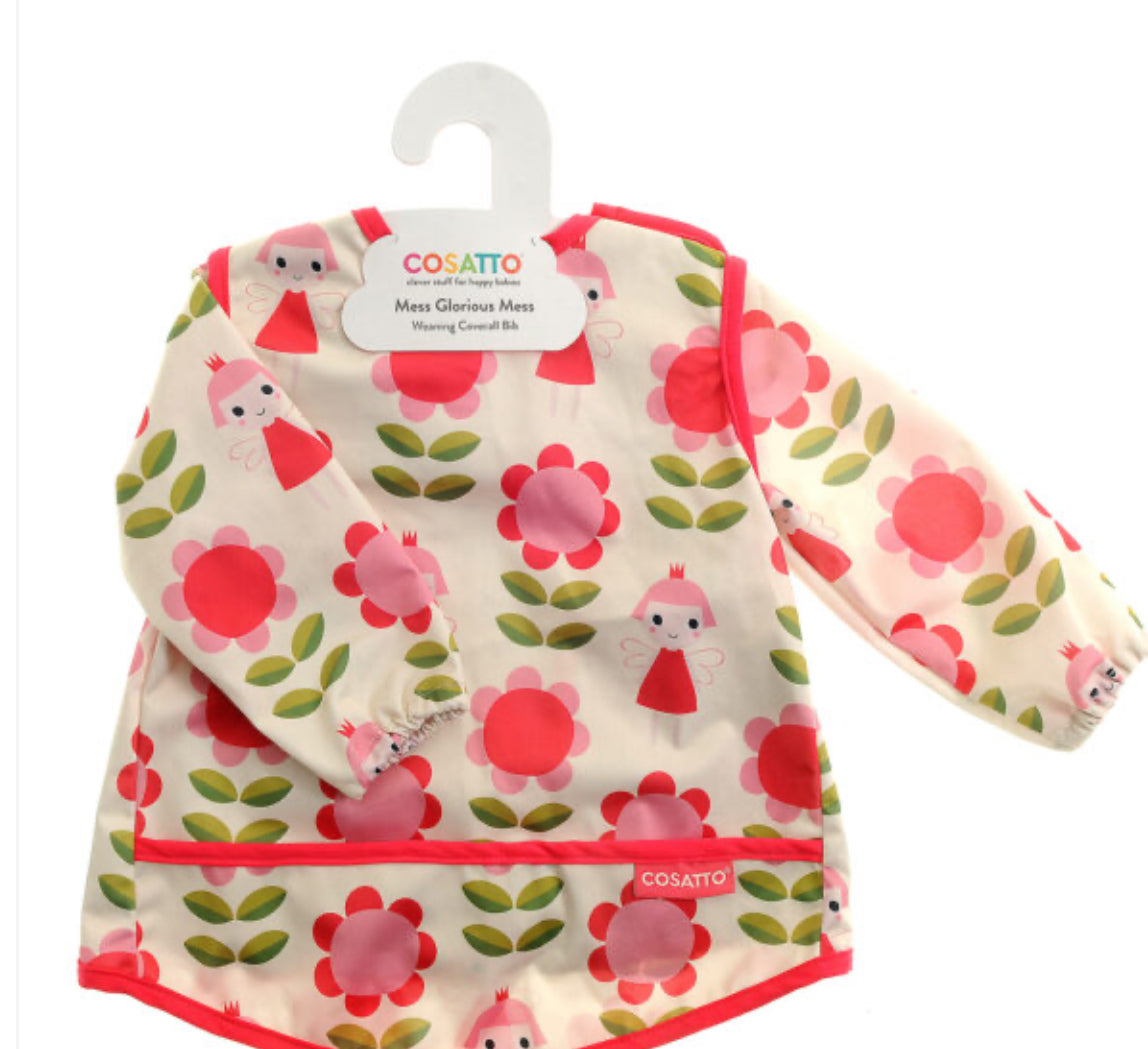 The Fairy Garden Coverall Feeding Bib is the perfect solution for messy play and mealtime. With its waterproof material and food catcher, cleaning up after your little one has never been easier. Plus, its adorable and cheerful design will make mealtime more fun. Machine washable, and one size fits 6 months to 24 months.
