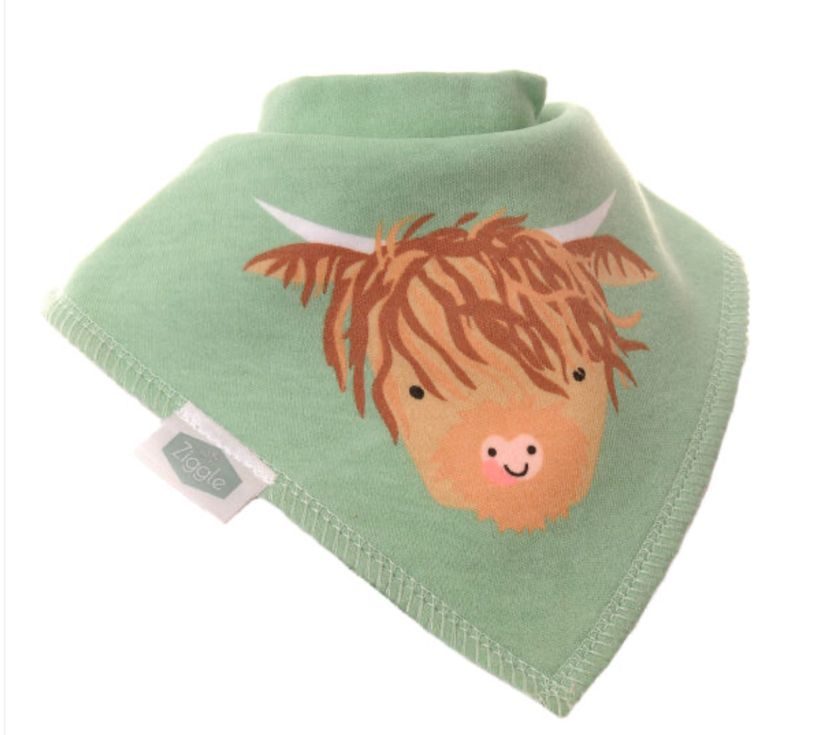 This Highland Cow Bandanna Bib is a cool and essential item for your baby. Made with highly absorbent and soft material, it is both fun and practical for feeding and drooling needs. Perfect for gifting to new parents.